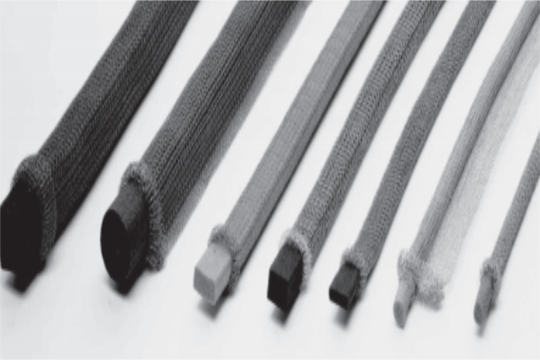 带弹性体芯的MESH STRIP衬料是由双层丝网围绕矩形或圆形氯丁橡胶或硅酮芯编织组成的。编织丝网具有导电性用于EMI/EMP屏蔽,而芯料提供良好的可压缩性和回弹能力。封闭力在50 - 100psi(0.34-0.69MPa)范围内。