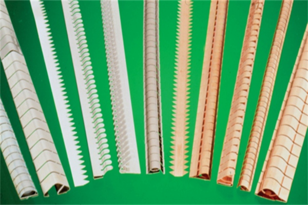 在POLASTRIP衬料中,EMI屏蔽是由monel或铝编织丝网嵌在硅酮中来提供的。POLASTRIP衬料以板料形式供货,定做的衬料能够很容易地从上面切下。甚至复杂的衬料能够用便宜的刀模切下,而且定做的衬料能够在工厂加工成客户指定的规格尺寸。POLASTRIP衬料以条的形式供货,或者由条来加工成定做的衬料。对于总尺寸小于4.5in.(114mm)的衬料,推荐采用模切板而不用条来拼接。